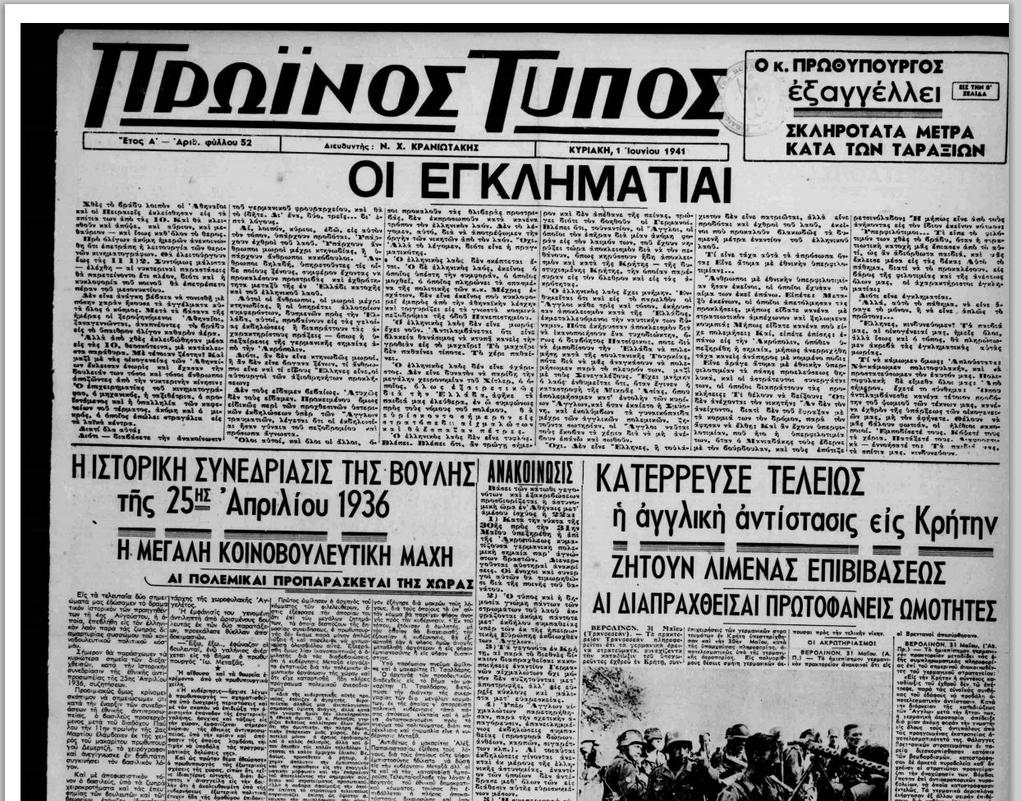 Μα... η "πατριωτική" «Βραδυνή» της 1ης Ιουνίου 1941 (φωτο αριστερά)