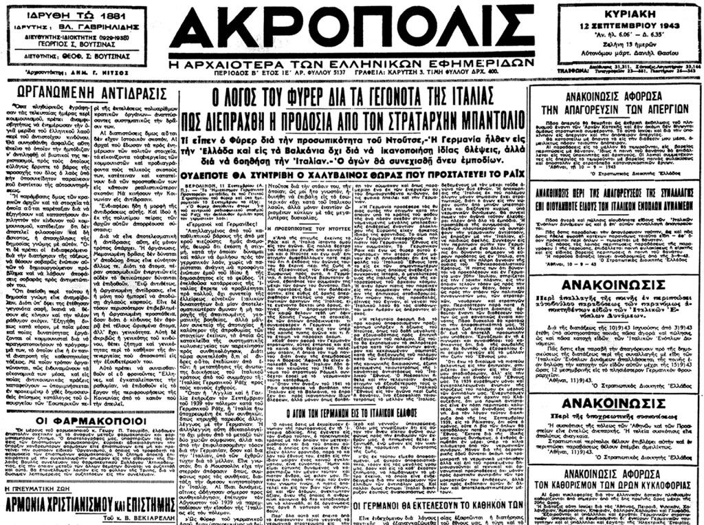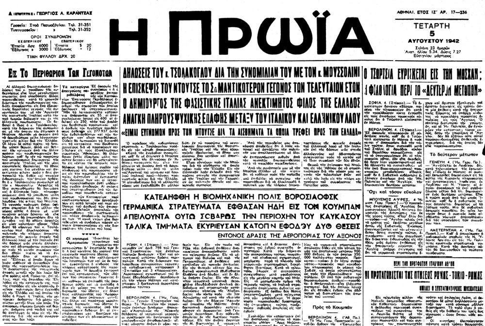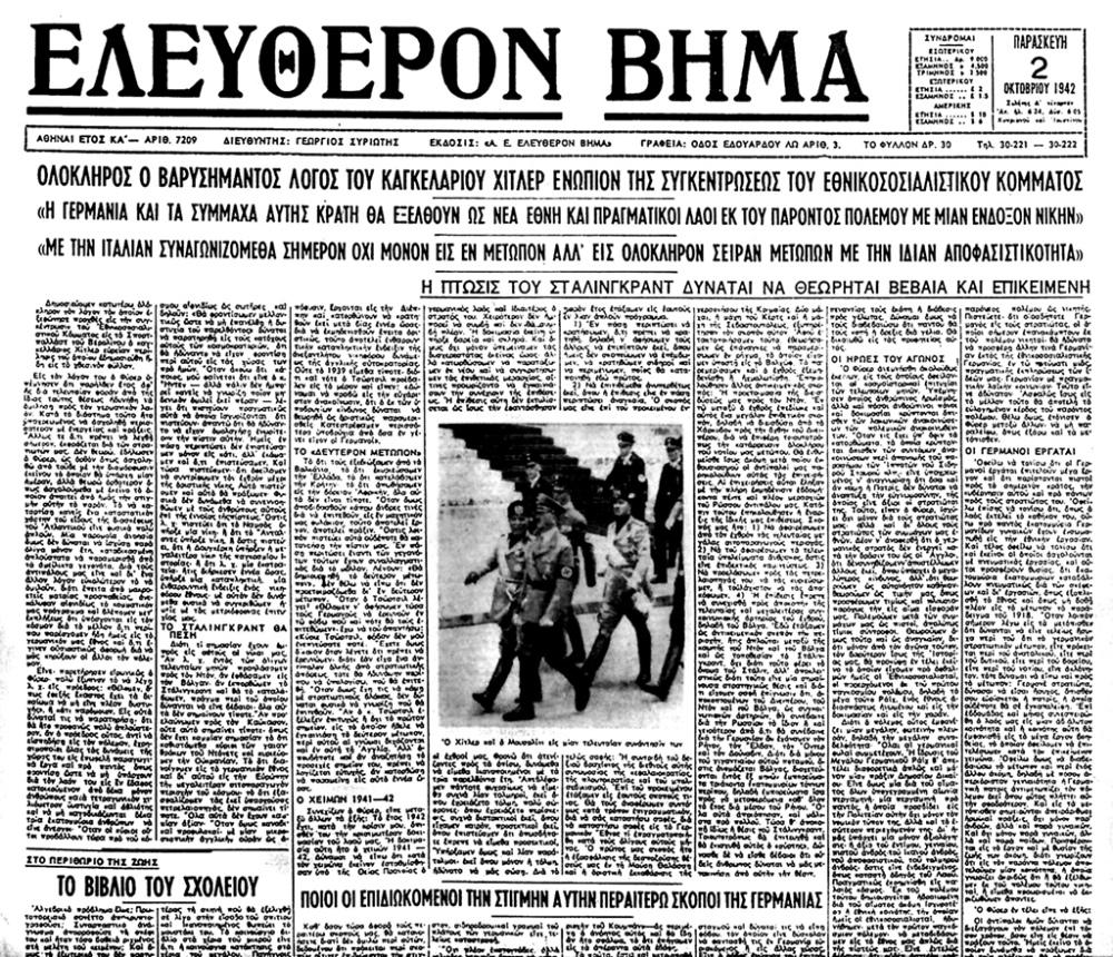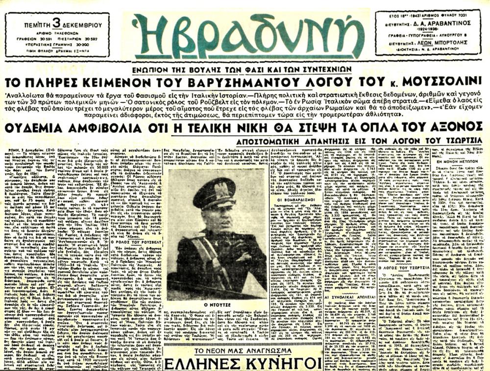 Πάρτε στη συνέχεια, μια -μικρή μόνο- γεύση, από πρωτοσέλιδα "εθνικόφρονων", "πατριωτικών" και "δημοκρατικών" εφημερίδων, στην κατεχόμενη από τον Άξονα Ελλάδα, να υμνούν το φασισμό - ναζισμό.
