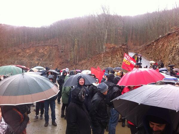 Οι διαδηλωτές αποχώρησαν γύρω στις 2.30΄μμ από τις Σκουριές προς τη τοποθεσία Χονδρό Δέντρο από όπου και θα επιστρέψουν στα χωριά...